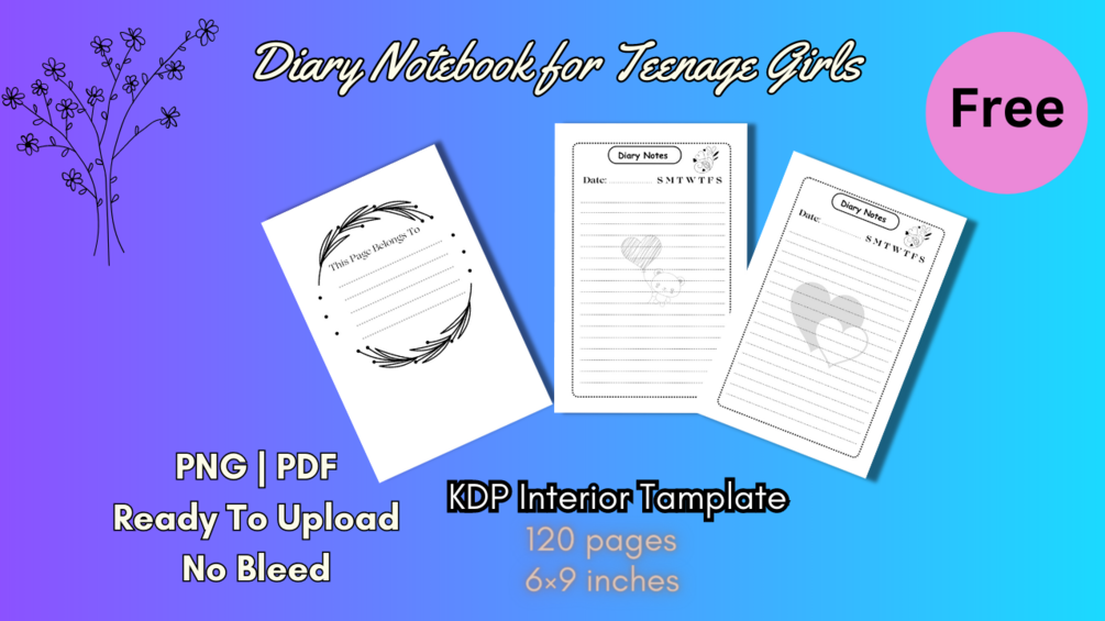 Get this motivational designs to create a low content 6x9’’ Journal Diary Notebook for teenage girls to be published on Amazon KDP.